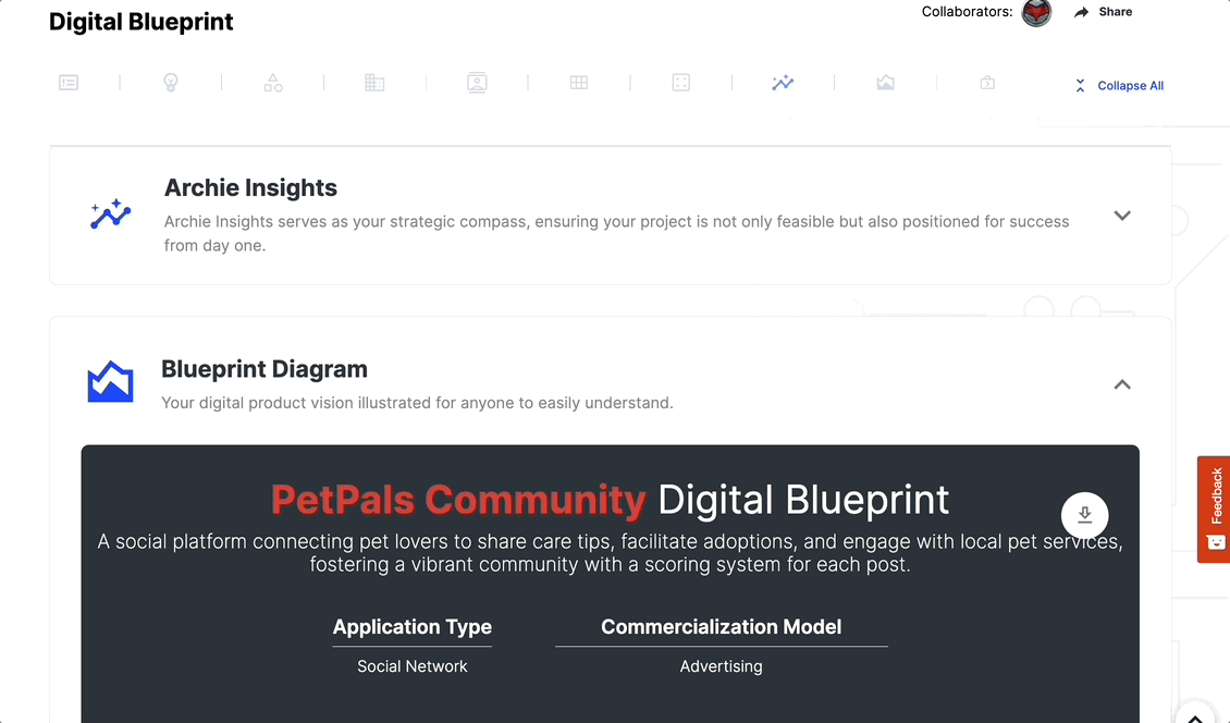 For this reason, we treat every section of the blueprint as an essential source of value. Each part is crafted with a clear objective: to encourage the user to move forward with the project. One section, particularly, exemplifies this value-size relationship: the Insights section.